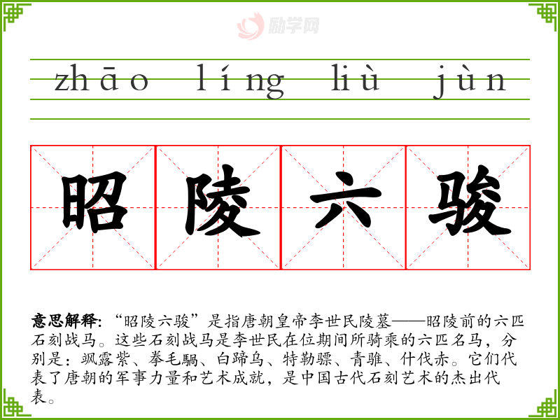 1.昭陵六骏的拼音是什么?昭陵六骏怎么读?