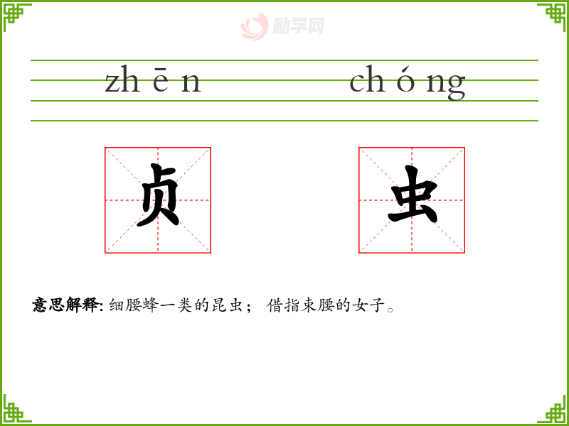 贞虫的意思是:细腰蜂一类的昆虫; 借指束腰的女子。