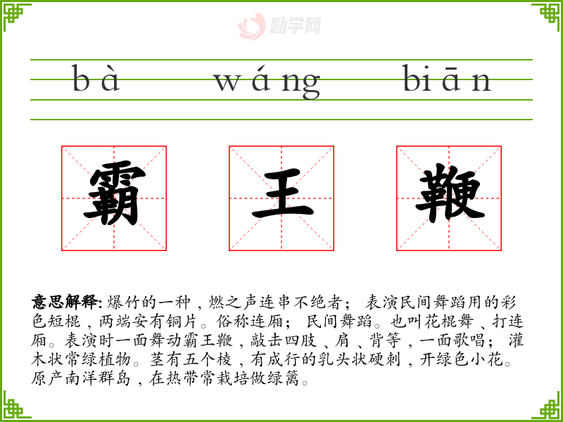 1.霸王鞭的拼音是什么?霸王鞭怎么读?