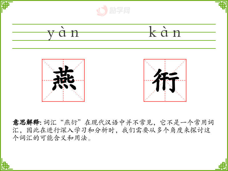 词汇“燕衍”在现代汉语中并不常见,它不是一个常用词汇,因此在进行深入学*和分析时,我们需要从多个角度来探讨这个词汇的可能含义和用法。