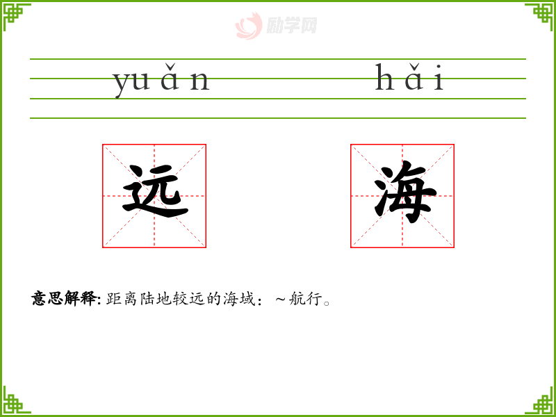 《说文》-远,辽也。 《尔雅》-远,遐也。 《礼记·王制》。注:“九州之外也。”-屏之远方。 《礼记·中庸》-柔远人也。 《礼记·乐记》-穷高极远。 《战国策·赵策》-念悲其远。 《左传·僖公三十三年》-远主备之,无乃不可乎? 《左传·三十三年》-劳师以袭远,非所闻也。 唐·杜牧《阿房宫赋》-缦立远视。 清·徐珂《清稗类钞·战事类》-火器利袭远,技击利巷战。 《广东军务记》-极目远望。