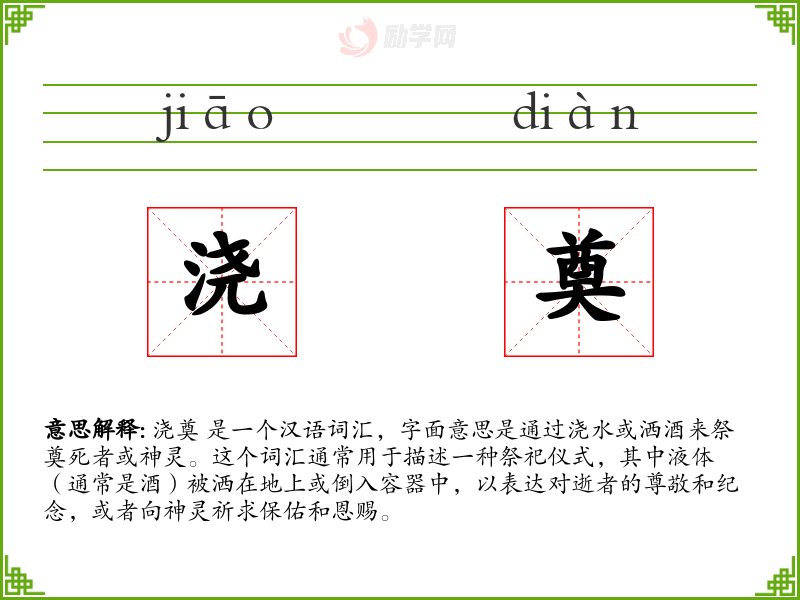 1.浇奠的拼音是什么?浇奠怎么读?