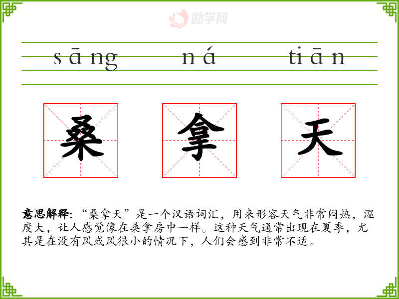 1.桑拿天的拼音是什么?桑拿天怎么读?