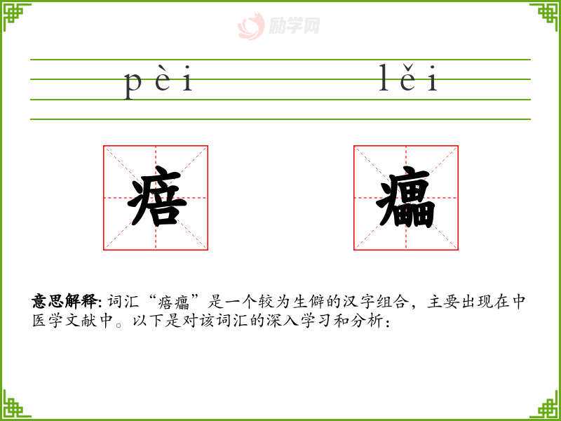 词汇“㾦㿔”是一个较为生僻的汉字组合,主要出现在中医学文献中。以下是对该词汇的深入学*和分析: