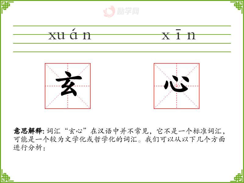 词汇“玄心”在汉语中并不常见,它不是一个标准词汇,可能是一个较为文学化或哲学化的词汇。我们可以从以下几个方面进行分析: