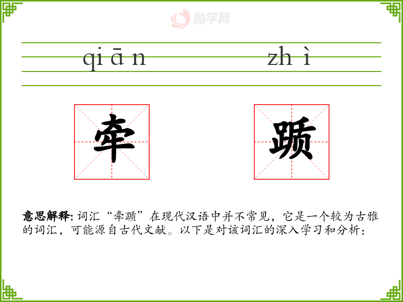 词汇“牵踬”在现代汉语中并不常见,它是一个较为古雅的词汇,可能源自古代文献。以下是对该词汇的深入学*和分析: