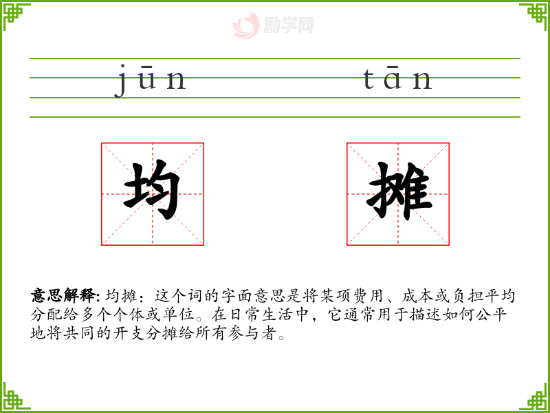 1.均摊的拼音是什么?均摊怎么读?