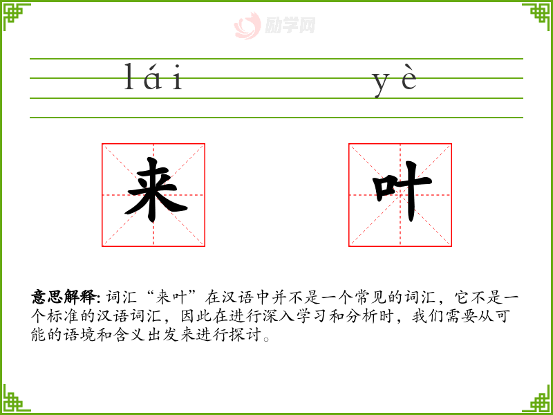词汇“来叶”在汉语中并不是一个常见的词汇,它不是一个标准的汉语词汇,因此在进行深入学习和分析时,我们需要从可能的语境和含义出发来进行探讨。