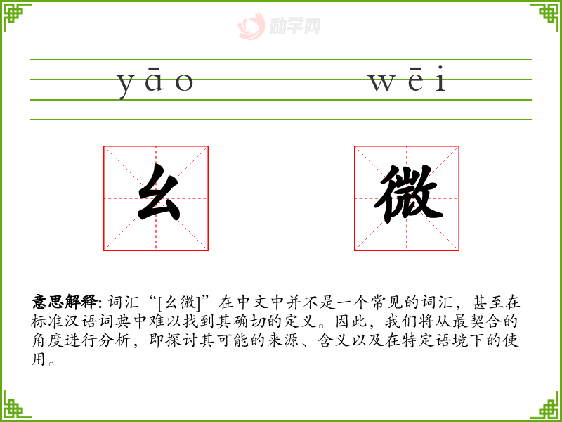词汇“[幺微]”在中文中并不是一个常见的词汇,甚至在标准汉语词典中难以找到其确切的定义。因此,我们将从最契合的角度进行分析,即探讨其可能的来源、含义以及在特定语境下的使用。