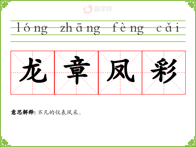 龙章凤彩的意思是:不凡的仪表风采。