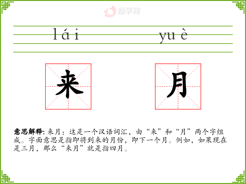 1.来月的拼音是什么?来月怎么读?