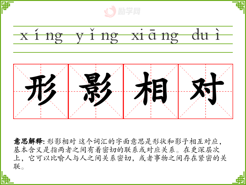 - 专业领域:在某些专业领域,如物理学,形影相对可能用来描述物体和其影子之间的关系。