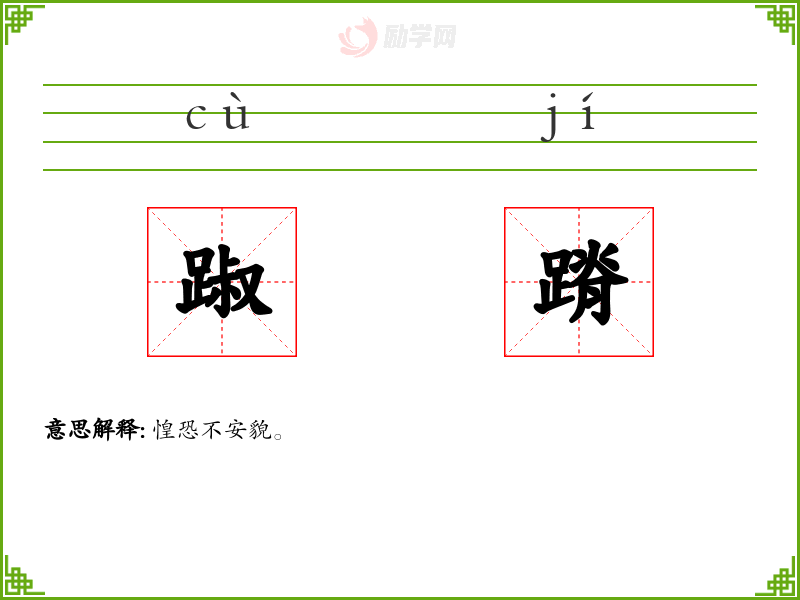 踧蹐的意思是:惶恐不安貌。