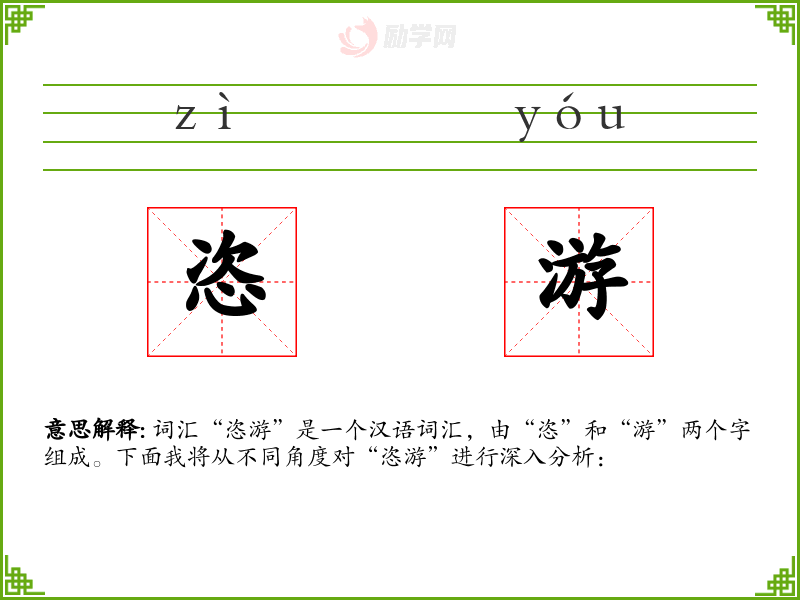 词汇“恣游”是一个汉语词汇,由“恣”和“游”两个字组成。下面我将从不同角度对“恣游”进行深入分析: