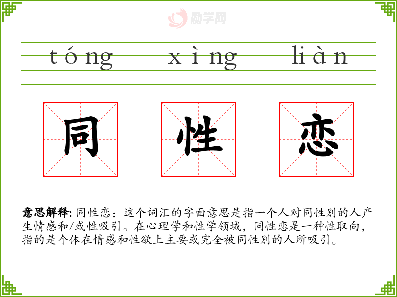 1.同性恋的拼音是什么?同性恋怎么读?