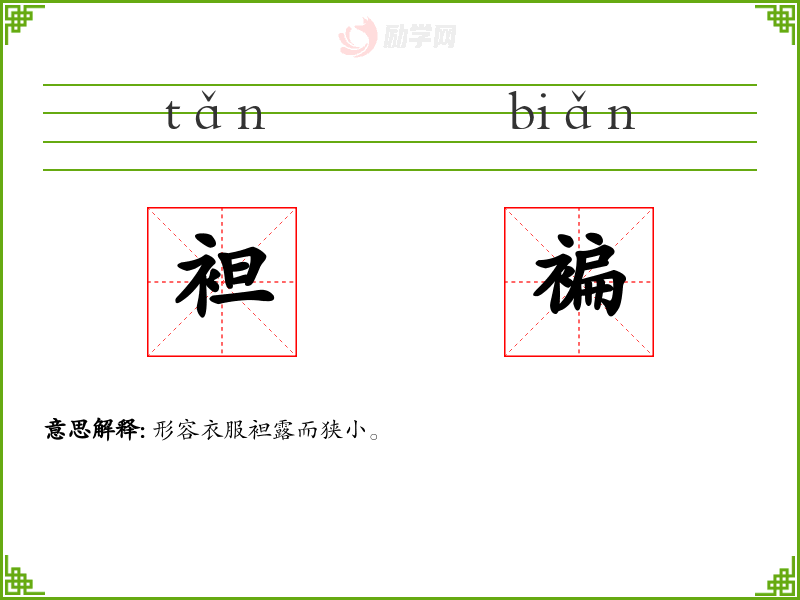 袒褊的意思是:形容衣服袒露而狭小。
