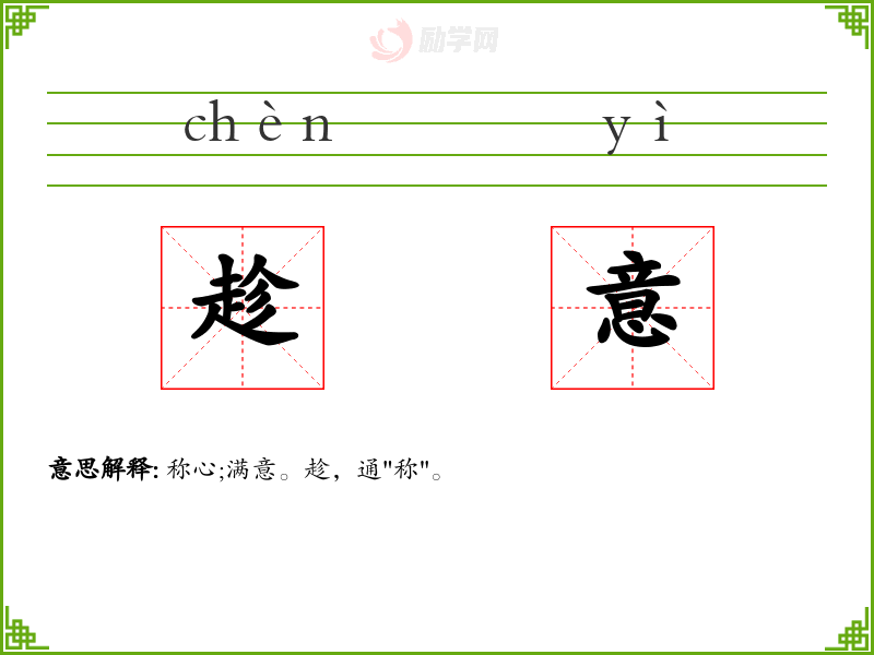 趁意的意思是:称心;满意。趁,通"称"。