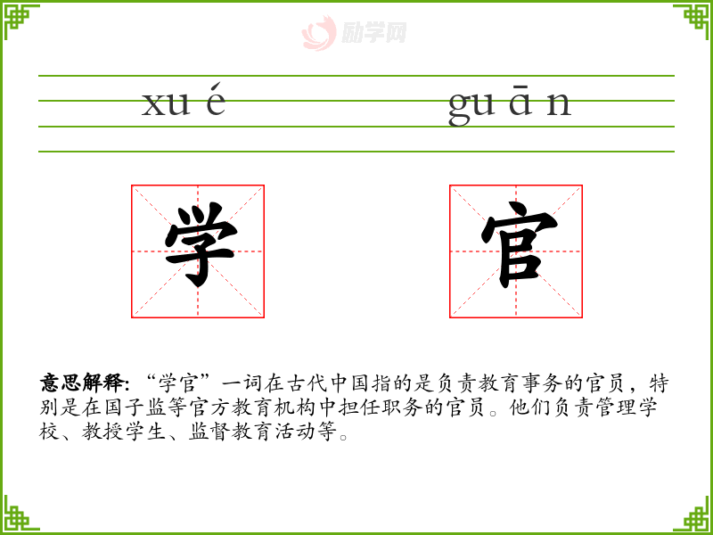 - 在古代,学官负责教授国子监的学生,确保他们接受正规的教育。