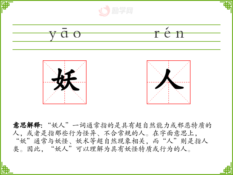 “妖人”一词通常指的是具有超自然能力或邪恶特质的人,或者是指那些行为怪异、不合常规的人。在字面意思上,“妖”通常与妖怪、妖术等超自然现象相关,而“人”则是指人类。因此,“妖人”可以理解为具有妖怪特质或行为的人。
