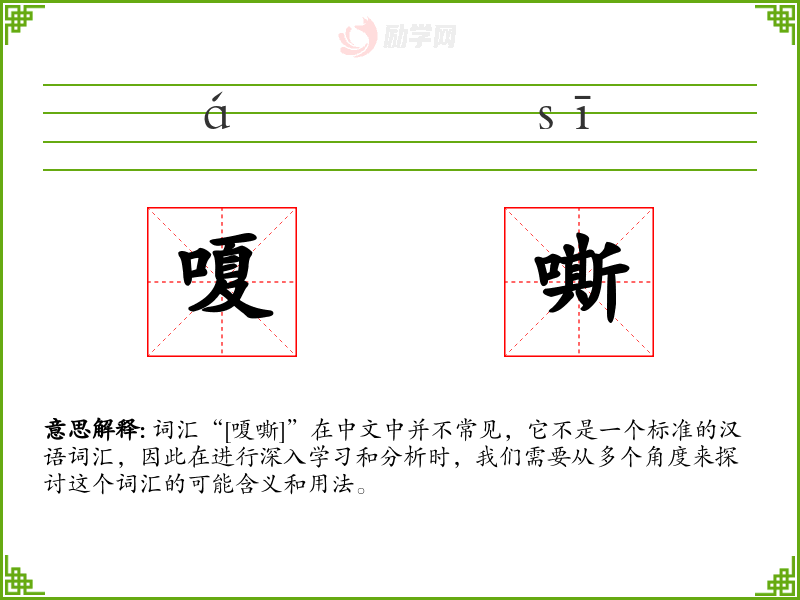 词汇“[嗄嘶]”在中文中并不常见,它不是一个标准的汉语词汇,因此在进行深入学习和分析时,我们需要从多个角度来探讨这个词汇的可能含义和用法。