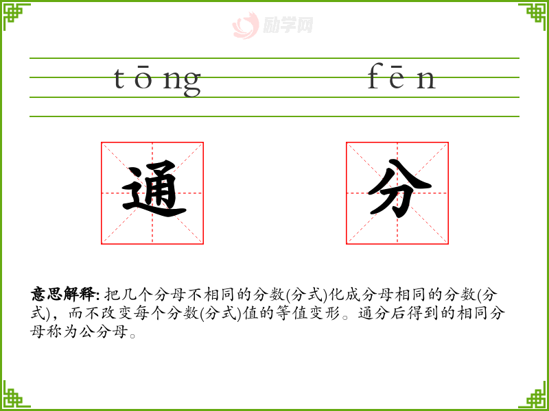 1.通分的拼音是什么?通分怎么读?
