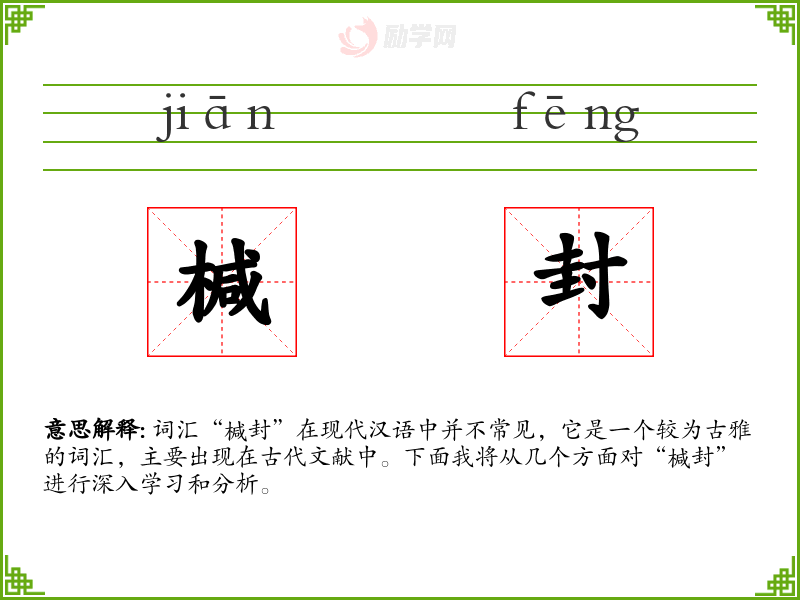词汇“椷封”在现代汉语中并不常见,它是一个较为古雅的词汇,主要出现在古代文献中。下面我将从几个方面对“椷封”进行深入学*和分析。