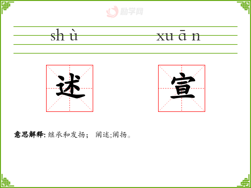 述宣的意思是:继承和发扬; 阐述;阐扬。
