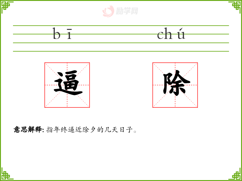 《说文新附》-逼,近也。 《资治通鉴》-秦兵逼淝水而陈。(陈:布阵) 《聊斋志异·促织》-鸡健进,逐逼之,虫已在爪下矣。 《国语·郑语》-不可偪也。 《淮南子·兵略》-是故入小而不偪。 《小尔雅·广诂》-逼,近也。