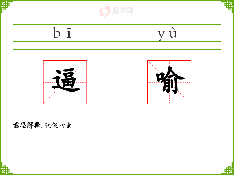 逼喻的意思是:敦促劝喻。