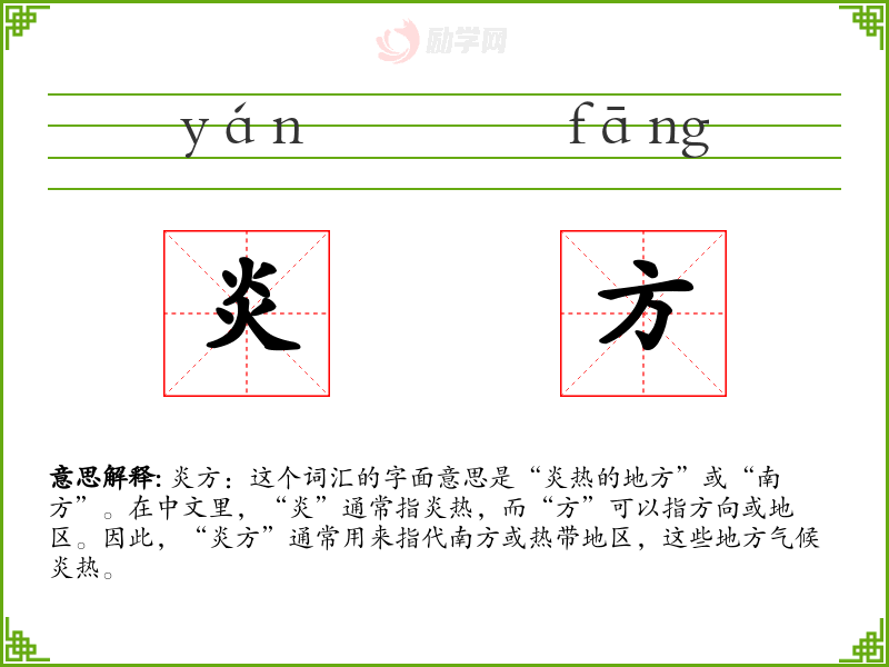 1.炎方的拼音是什么?炎方怎么读?