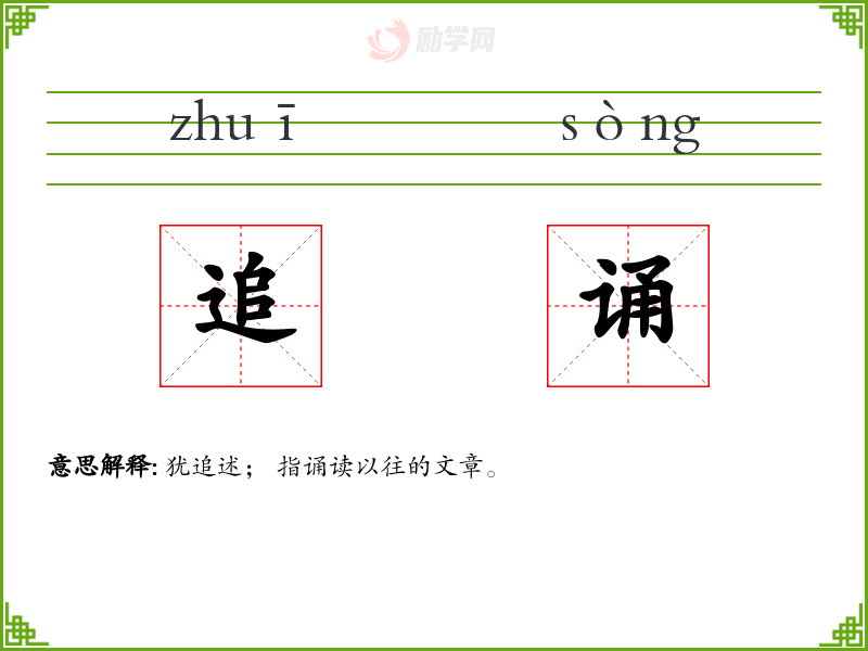 追诵的意思是:犹追述; 指诵读以往的文章。