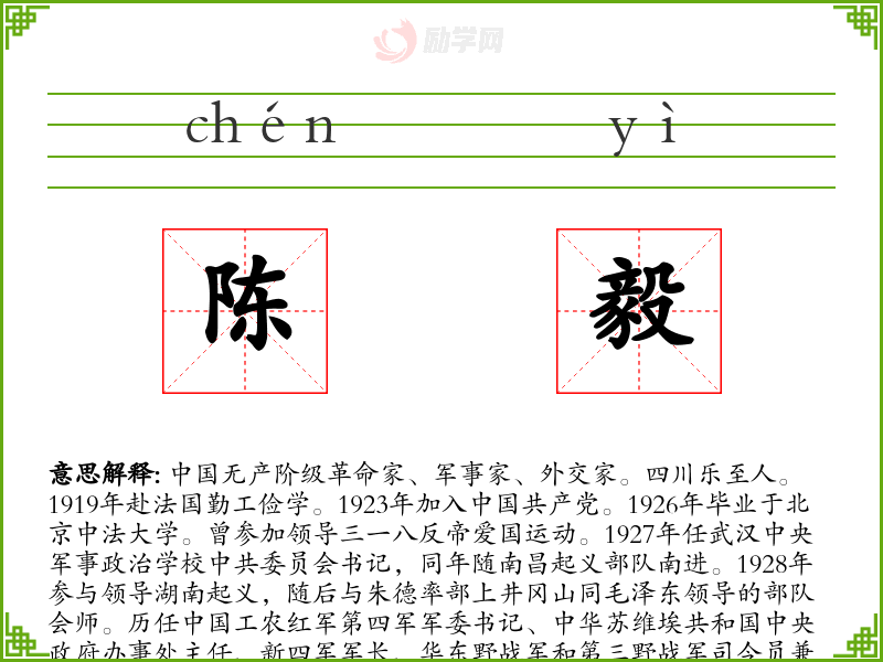 1.陈毅的拼音是什么?陈毅怎么读?