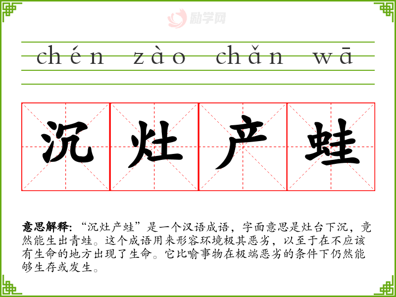 1.沉灶产蛙的拼音是什么?沉灶产蛙怎么读?