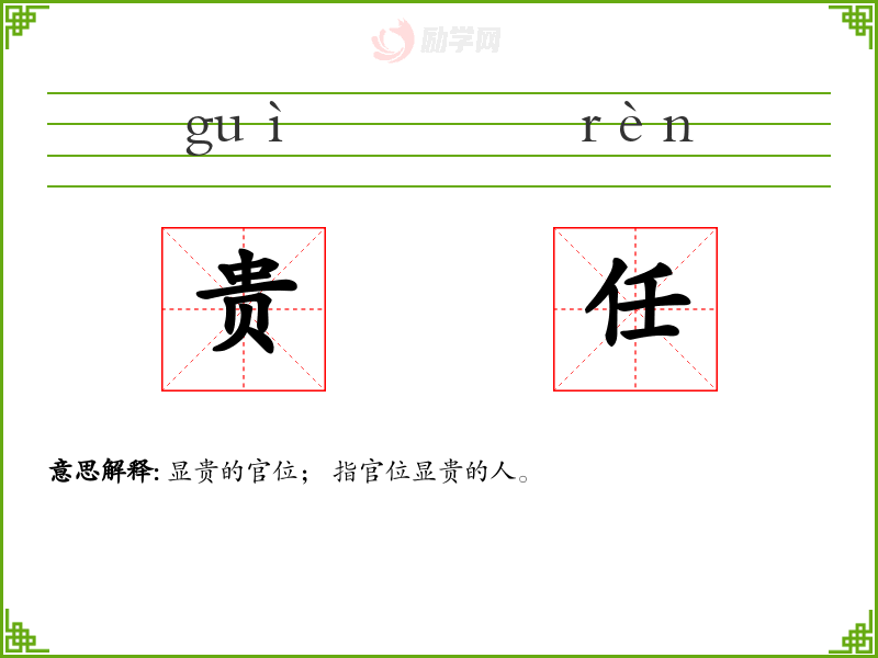 贵任的意思是:显贵的官位; 指官位显贵的人。