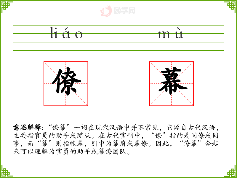 1.僚幕的拼音是什么?僚幕怎么读?