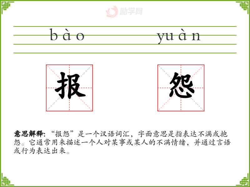 1.报怨的拼音是什么?报怨怎么读?