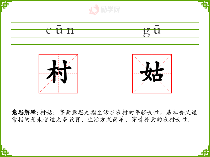 1.村姑的拼音是什么?村姑怎么读?