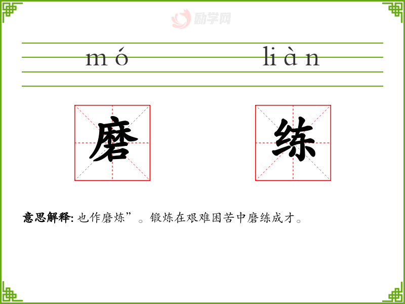磨练的意思是:也作磨炼”。锻炼在艰难困苦中磨练成才。