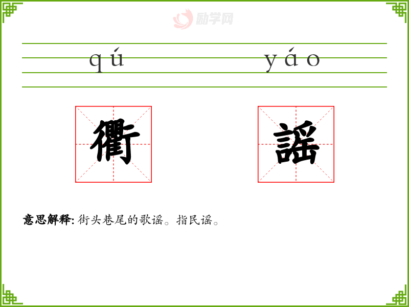 衢謡的意思是:街头巷尾的歌谣。指民谣。
