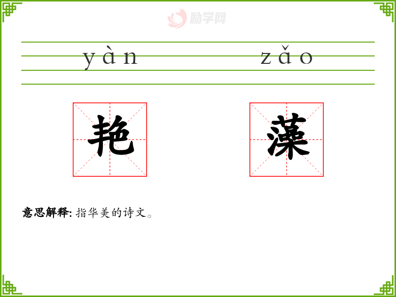 艳藻的意思是:指华美的诗文。