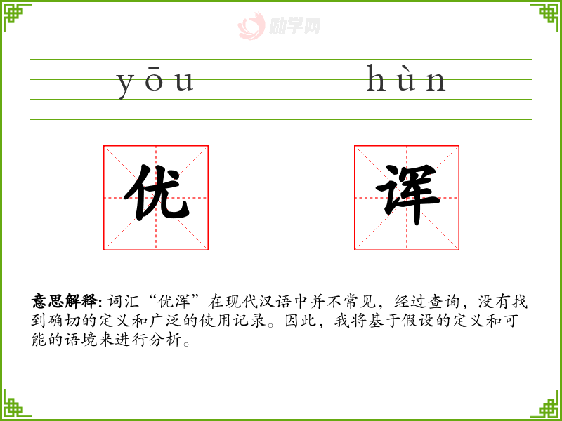词汇“优浑”在现代汉语中并不常见,经过查询,没有找到确切的定义和广泛的使用记录。因此,我将基于假设的定义和可能的语境来进行分析。