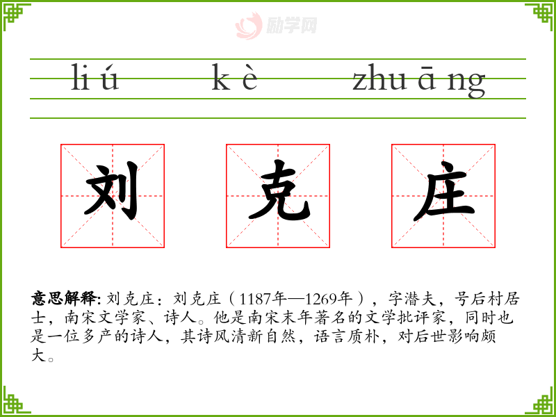 1.刘克庄的拼音是什么?刘克庄怎么读?