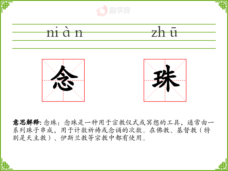 - 口语:在日常对话中,念珠可能被提及作为**实践的一部分,或者在讨论个人精神修行时。