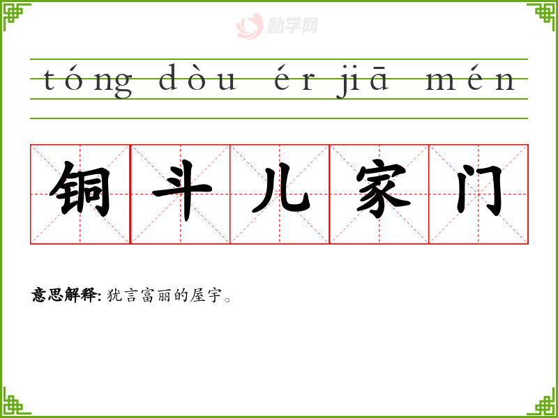 铜斗儿家门的意思是:犹言富丽的屋宇。
