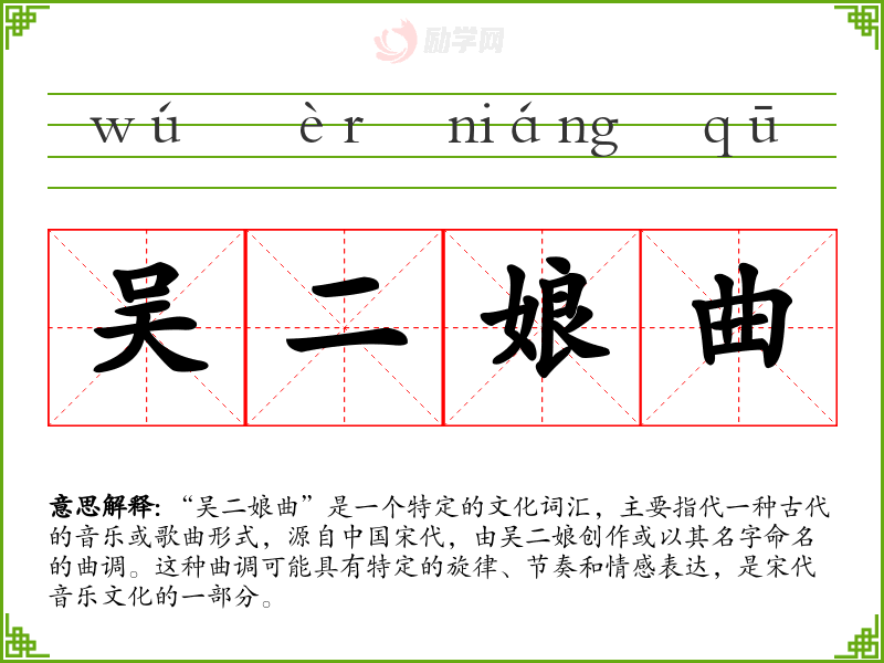 1.吴二娘曲的拼音是什么?吴二娘曲怎么读?