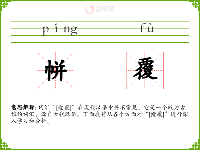 “[幪覆]”是一个具有古典韵味的词汇,虽然在现代汉语中不常用,但它体现了汉语的丰富性和历史深度。在语言学习和表达中,了解这样的词汇有助于更好地理解汉语的文化底蕴和历史传承。