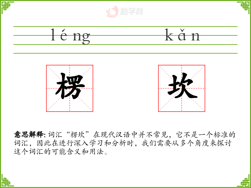 词汇“楞坎”在现代汉语中并不常见,它不是一个标准的词汇,因此在进行深入学习和分析时,我们需要从多个角度来探讨这个词汇的可能含义和用法。