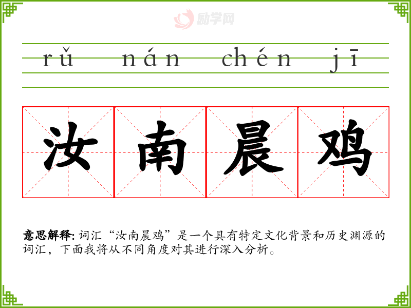 词汇“汝南晨鸡”是一个具有特定文化背景和历史渊源的词汇,下面我将从不同角度对其进行深入分析。