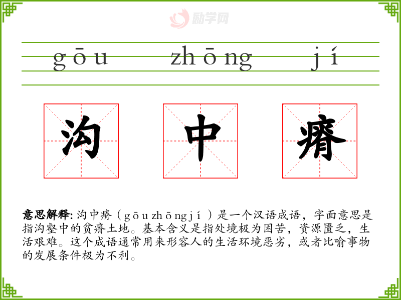 在我的生活中,沟中瘠这个词汇曾被用来描述我家乡的一个偏远山村,那里的人们生活条件艰苦,资源匮乏。这个词汇帮助我更深刻地理解了他们的生活状态,并激发了我对改善他们生活条件的思考。