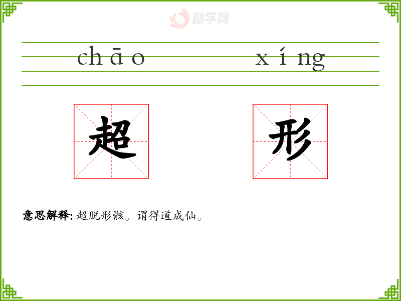 超形的意思是:超脱形骸。谓得道成仙。